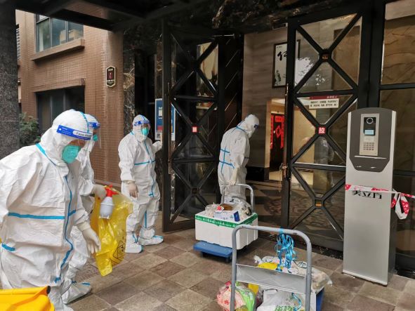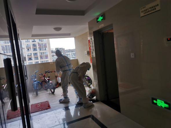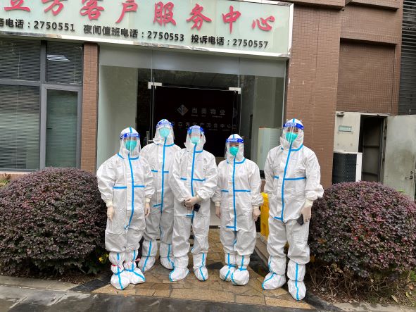 而同样由尚高物业服务的华美·美立方小区被发现有确诊病例并于29日开始隔离封控,现场物业工作者日夜两班连轴转,“外防输入、内防反弹”的防疫压力巨大。得知此情况后,尚高物业总经理雍贤富带队,副总黎敏、资产公司王娇妮以及实业公司赵婷婷、林锋组成志愿小组,前往美立方项目支援物业团队开展防疫工作。到达现场后,由原美立方物业负责人统筹安排,支援小组积极配合,不论是常规的生活物资运送、生活医疗垃圾清运,还是配合医护人员进行上门核酸检测、安排专人对确诊楼栋进行多次消杀等工作,都有条不紊地推动。